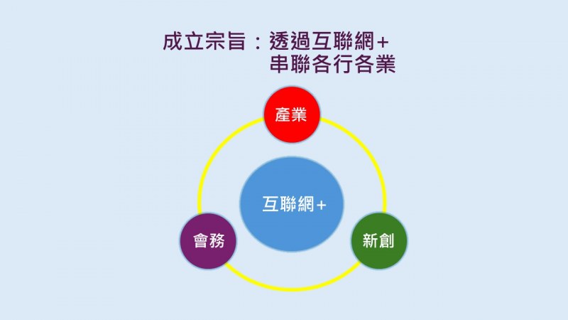 本会名称为两岸「互联网+」发展协会,宗旨为透过「互联网+」运用连系各行各业,以促进学术交流、青年就业创业、产业发展。